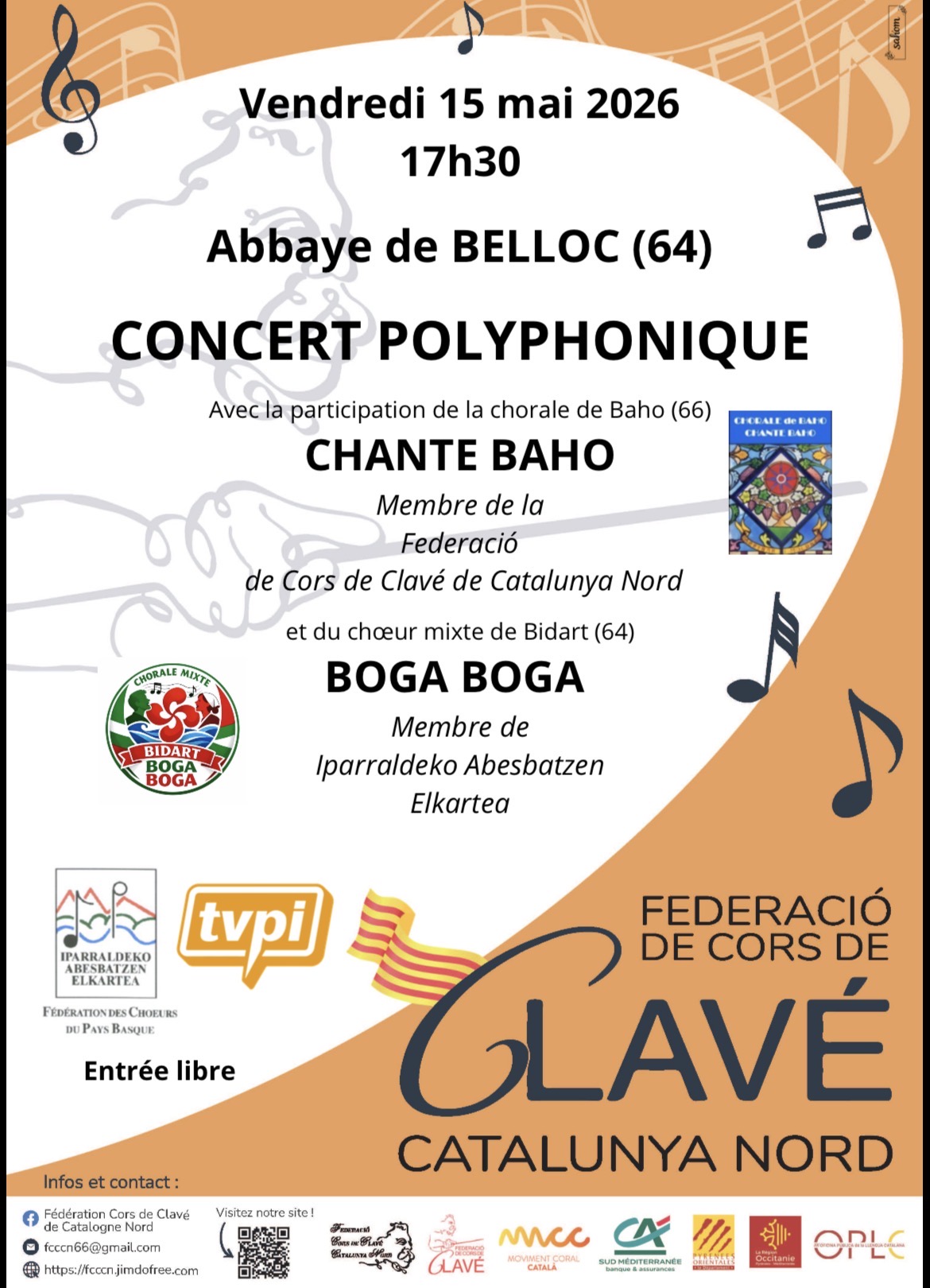 Concert à l’Abbaye de Belloc (à côté de Urt) le vendredi 15 mai 2026.